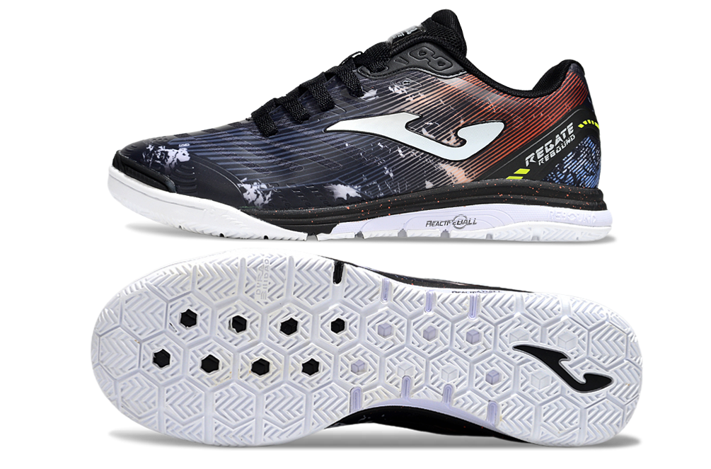 A Joma Top Flex Rebound Quadra foi criada para futsal de alto nível, combinando leveza, flexibilidade e resistência. O cabedal em microfibra com reforços garante durabilidade, enquanto a entressola em EVA proporciona amortecimento e resposta rápida. O solado em borracha anti-derrapante oferece tração superior em quadras indoor.