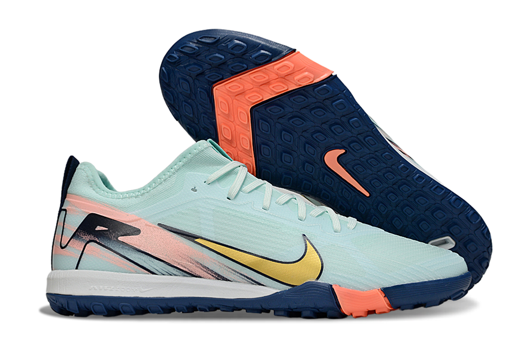A unidade Air Zoom no solado proporciona resposta rápida e amortecimento eficiente, ajudando nas arrancadas e mudanças de direção. O solado TF (travas de borracha) foi desenvolvido para gramados sintéticos, garantindo aderência e estabilidade superiores em todos os movimentos.